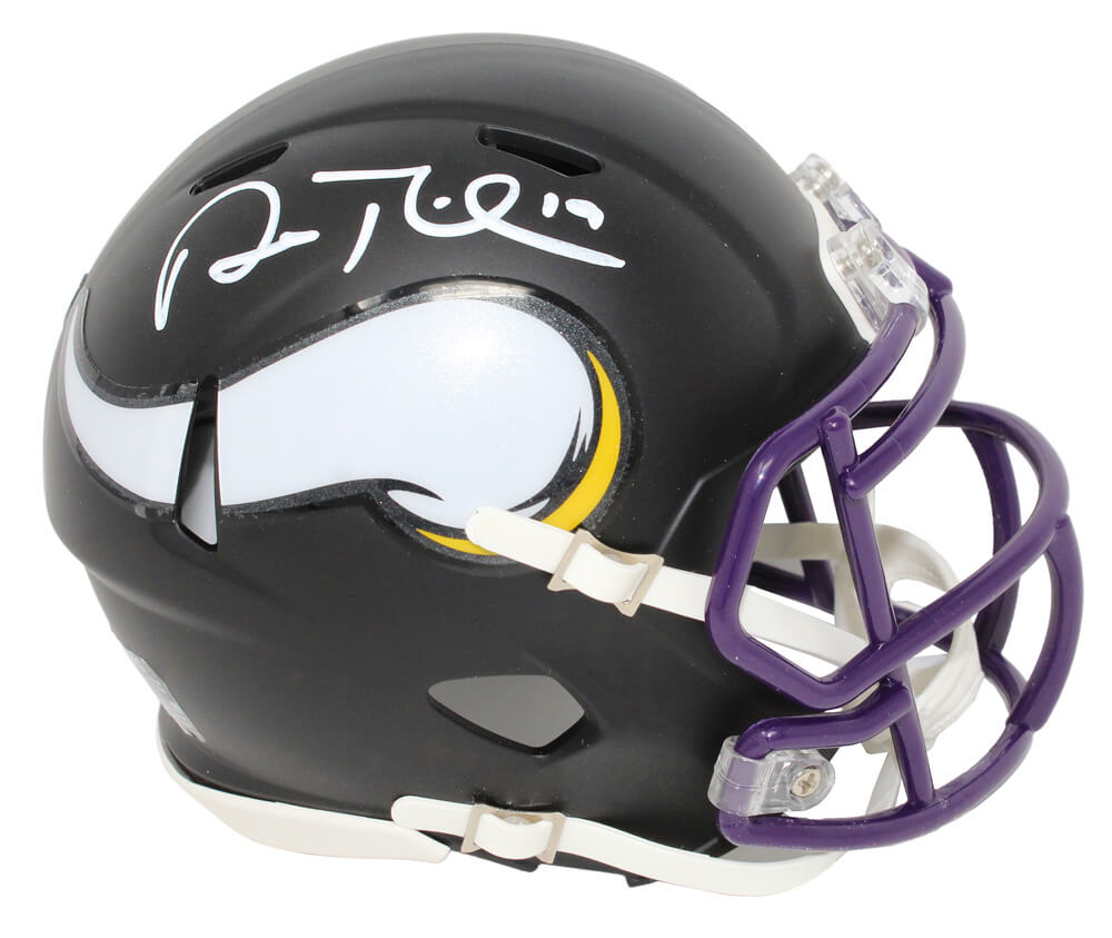 Adam Thielen signed Minnesota Vikings flat black matte Riddell speed mini helmet. Item comes with a Schwartz Sports Memorabilia tamper-proof numbered hologram and Certificate of Authenticity which can be verified online.