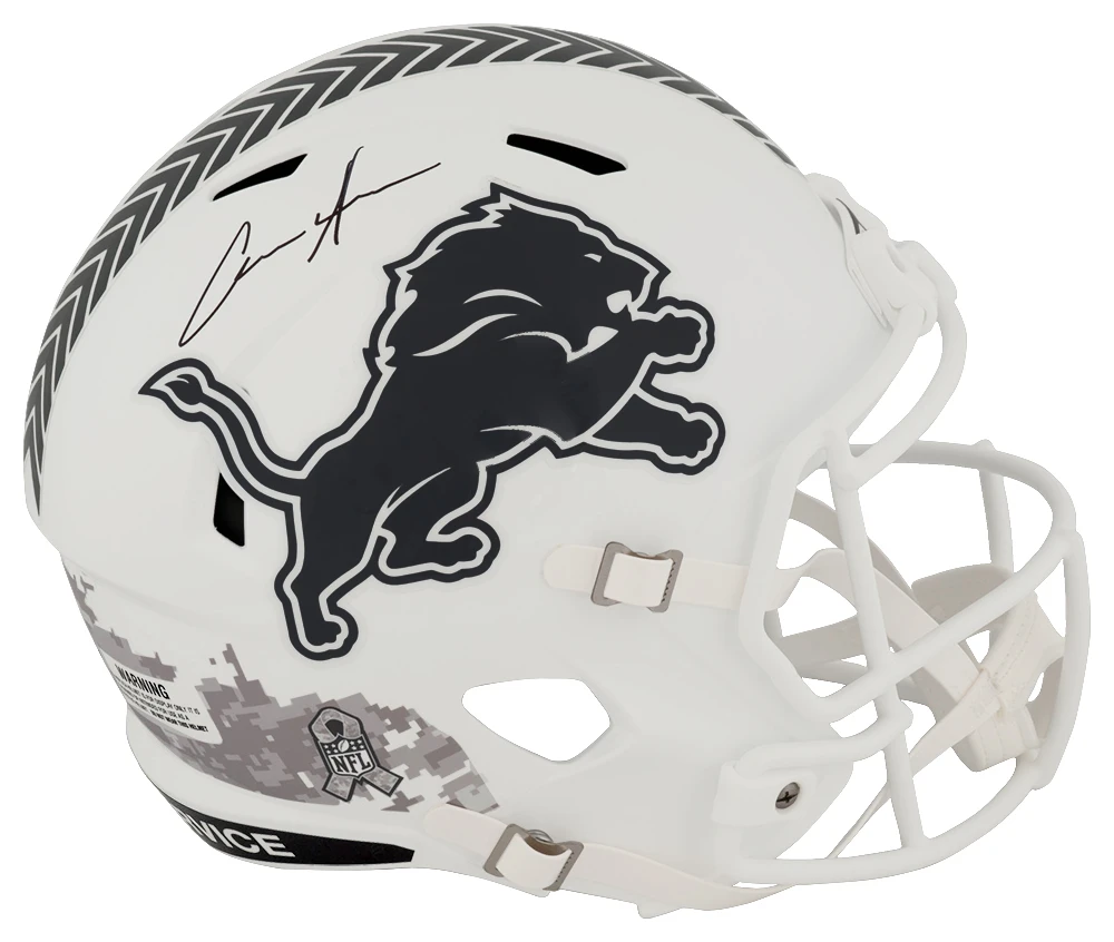 Aidan Hutchinson Signed Detroit Lions 2024 SALUTE White Riddell Full Size Speed Replica Helmet