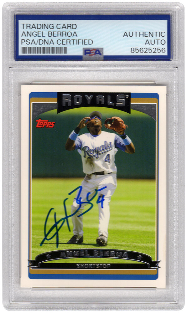 Angel Berroa signed Royals baseball trading card (various cards). The card has been authenticated and encapsulated by PSA and the authentication number can be verified online.