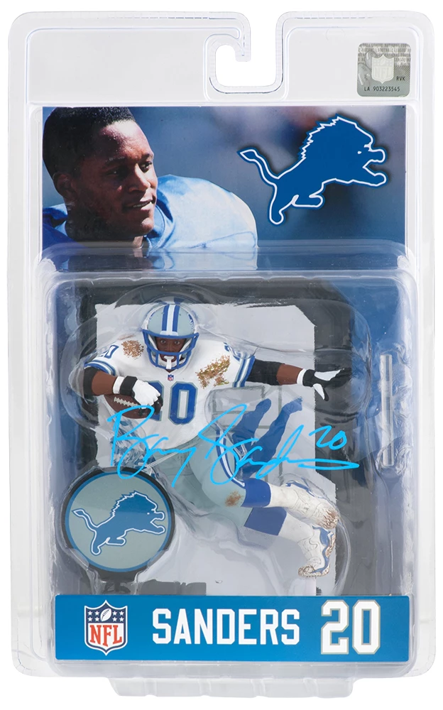 Barry Sanders signed Detroit Lions white jersey McFarlane Toys figurine. Item comes with a Schwartz Sports Memorabilia tamper-proof numbered hologram and Certificate of Authenticity which can be verified online.