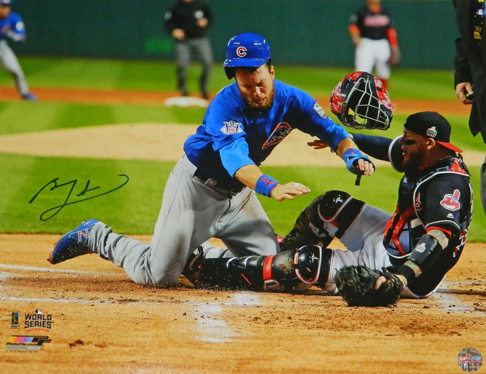 Ben Zobrist Signed Chicago Cubs 2016 World Series Home Plate Collision 16×20 Photo