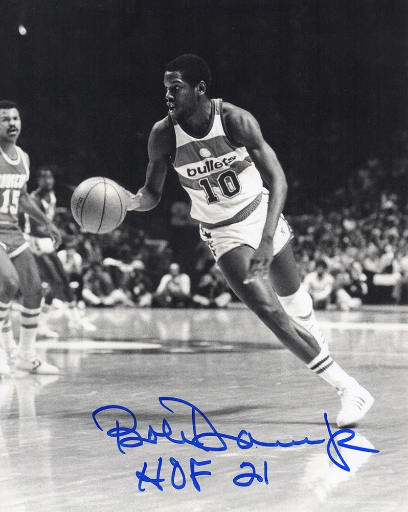 Bob Dandridge signed Bullets dribbling black and white 8×10 photo with ‘HOF 21’ inscription. Item comes with a Schwartz Sports Memorabilia tamper-proof numbered hologram and Certificate of Authenticity which can be verified online.