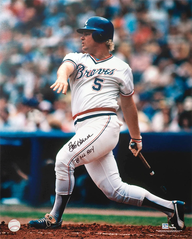 Bob Horner signed Atlanta Braves batting action 16×20 photo with ’78 NL ROY’ inscription. Item comes with a Schwartz Sports Memorabilia tamper-proof numbered hologram and Certificate of Authenticity which can be verified online.