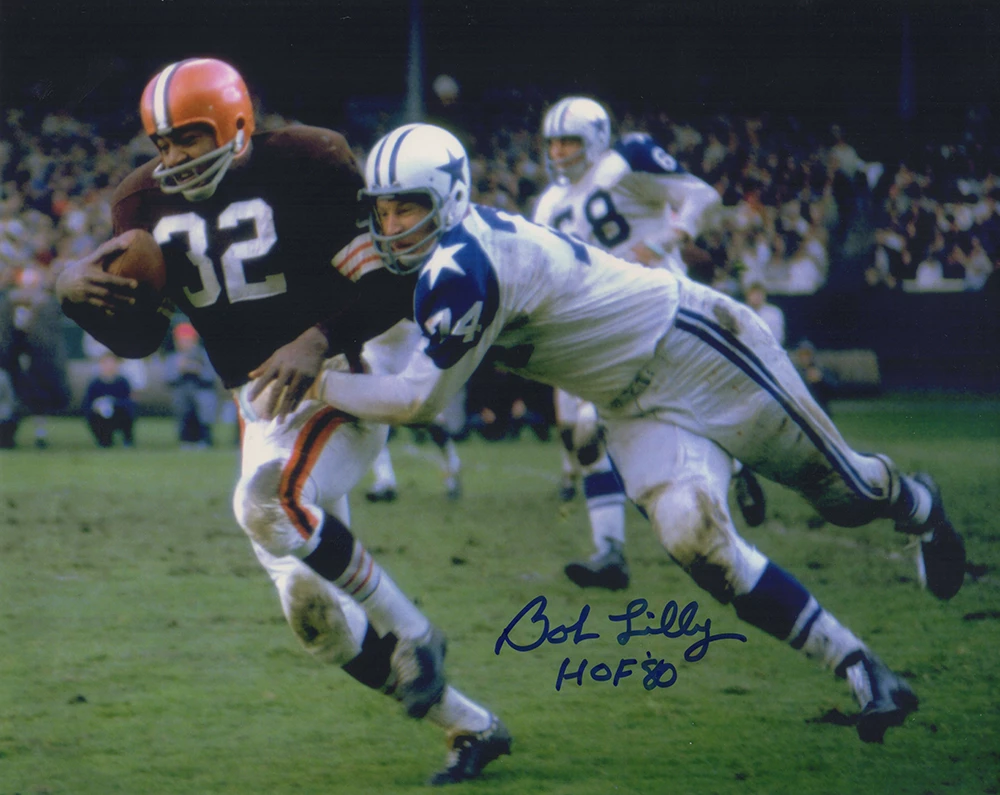 Bob Lilly Signed Cowboys Tackling Jim Brown 8×10 Photo w/HOF’80