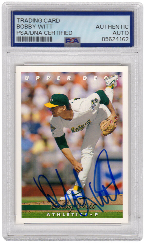 Bobby Witt signed A’s baseball trading card (various cards). The card has been authenticated and encapsulated by PSA and the authentication number can be verified online.
