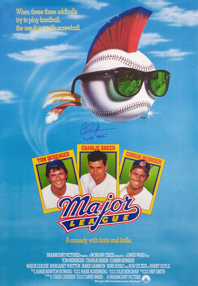 Charlie Sheen Signed Major League 27×40 Full Size Movie Poster w/Wild Thing