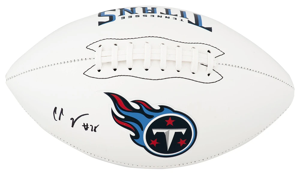 Chris Johnson signed Tennessee Titans logo Franklin white football. Item comes with a Schwartz Sports Memorabilia tamper-proof numbered hologram and Certificate of Authenticity which can be verified online.