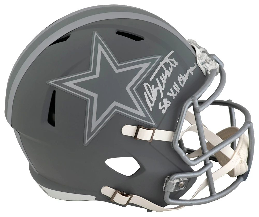 Danny White signed Dallas Cowboys Slate Riddell full size speed replica helmet with ‘SB XII Champs’ inscription. Item comes with a Schwartz Sports Memorabilia tamper-proof numbered hologram and Certificate of Authenticity which can be verified online.