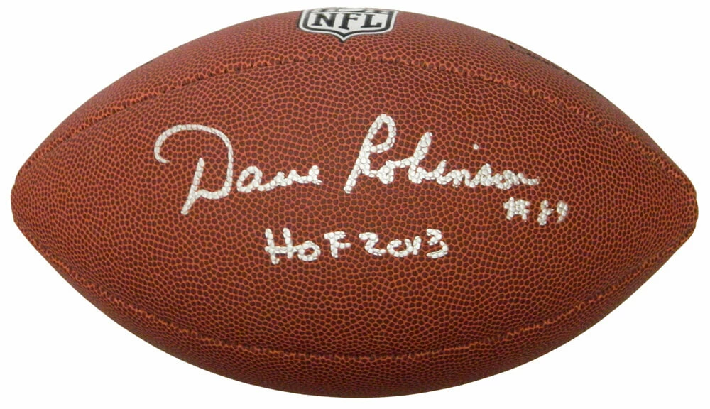 Dave Robinson signed Wilson Limited full size NFL football with ‘HOF 2013’ inscription. Item comes with a Schwartz Sports Memorabilia tamper-proof numbered hologram and Certificate of Authenticity which can be verified online.