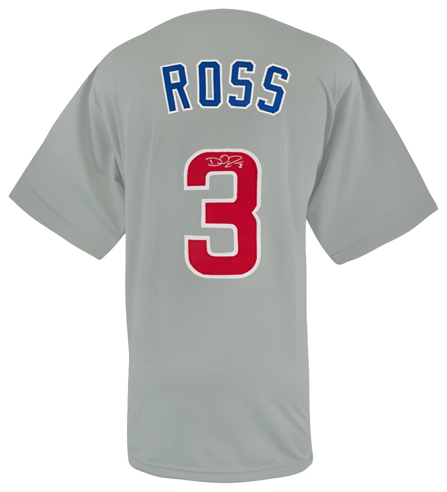 David Ross signed grey custom style baseball jersey. Item comes with a Schwartz Sports Memorabilia tamper-proof numbered hologram and Certificate of Authenticity which can be verified online.