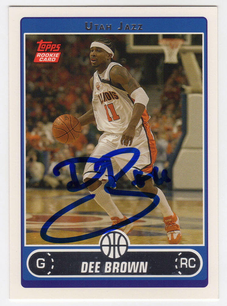 Dee Brown signed 2006 Topps rookie basketball trading card #229. Item comes with a Schwartz Sports Memorabilia tamper-proof numbered hologram (on back of physical card) and Certificate of Authenticity which can be verified online.