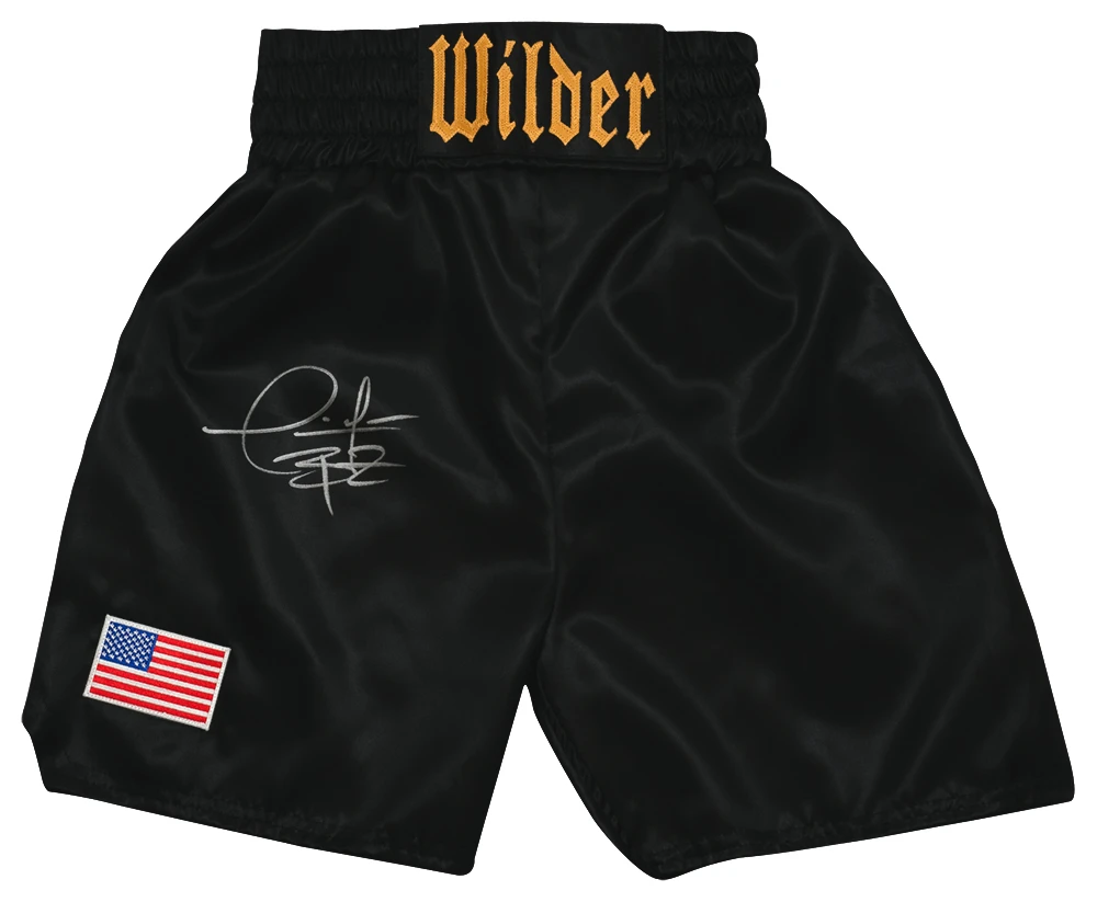 Deontay Wilder Signed Black Custom Boxing Trunks – (Beckett)