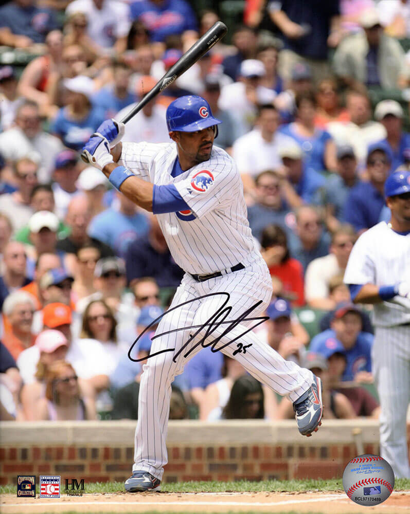 Derrek Lee signed Chicago Cubs white jersey batting 8×10 photo. Item comes with a Schwartz Sports Memorabilia tamper-proof numbered hologram and Certificate of Authenticity which can be verified online.