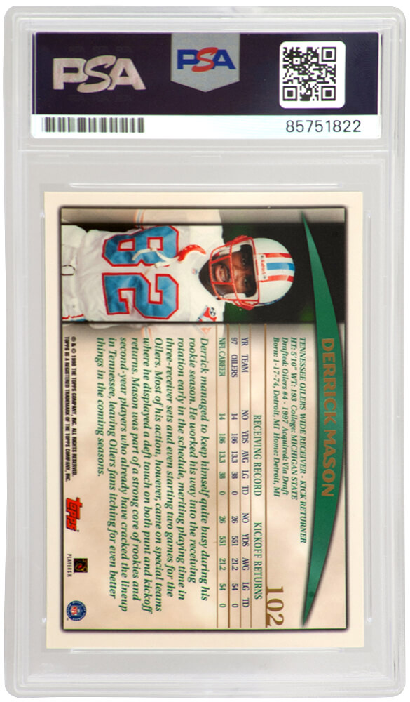 Derrick Mason Signed Houston Oilers 1998 Topps Football Trading Card #102 – (PSA Encapsulated)