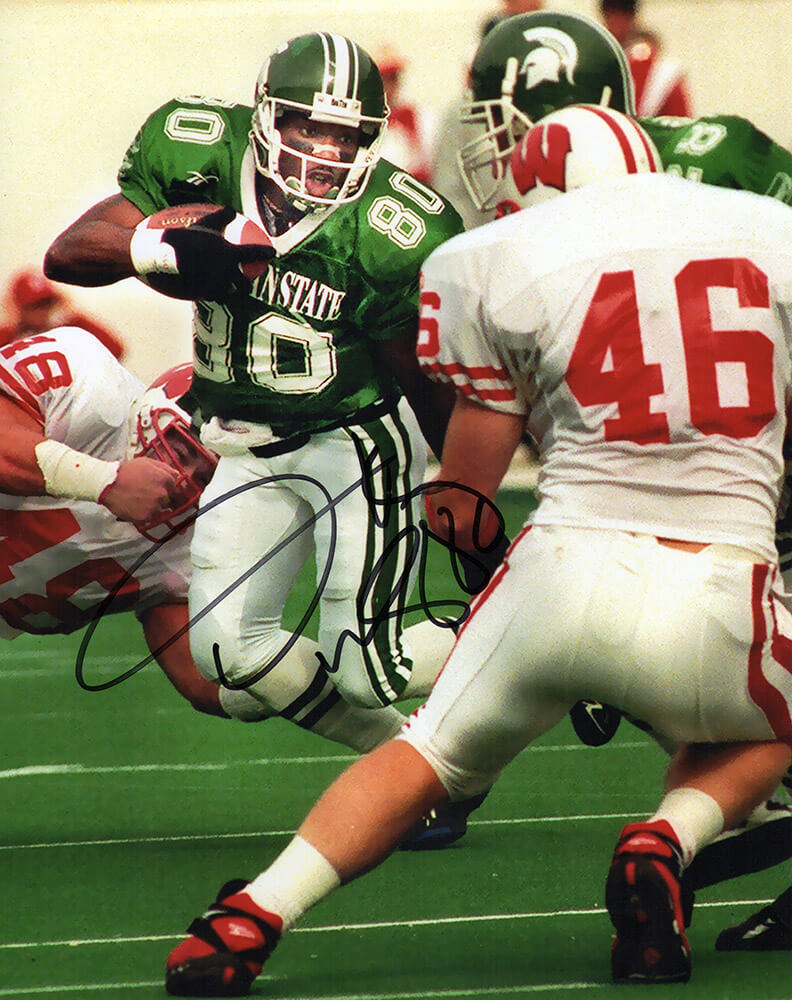 Derrick Mason Signed Michigan State Action vs Wisconsin 8×10 Photo