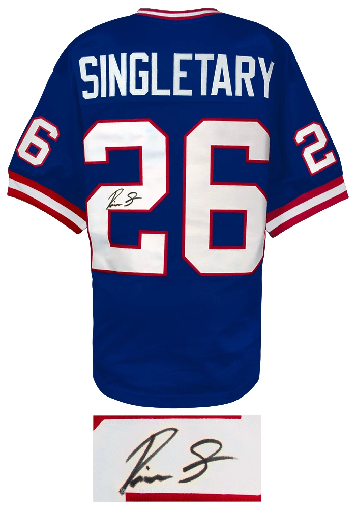 Devin Singletary signed blue custom football jersey. Item comes with a Schwartz Sports Memorabilia tamper-proof numbered hologram and Certificate of Authenticity which can be verified online.