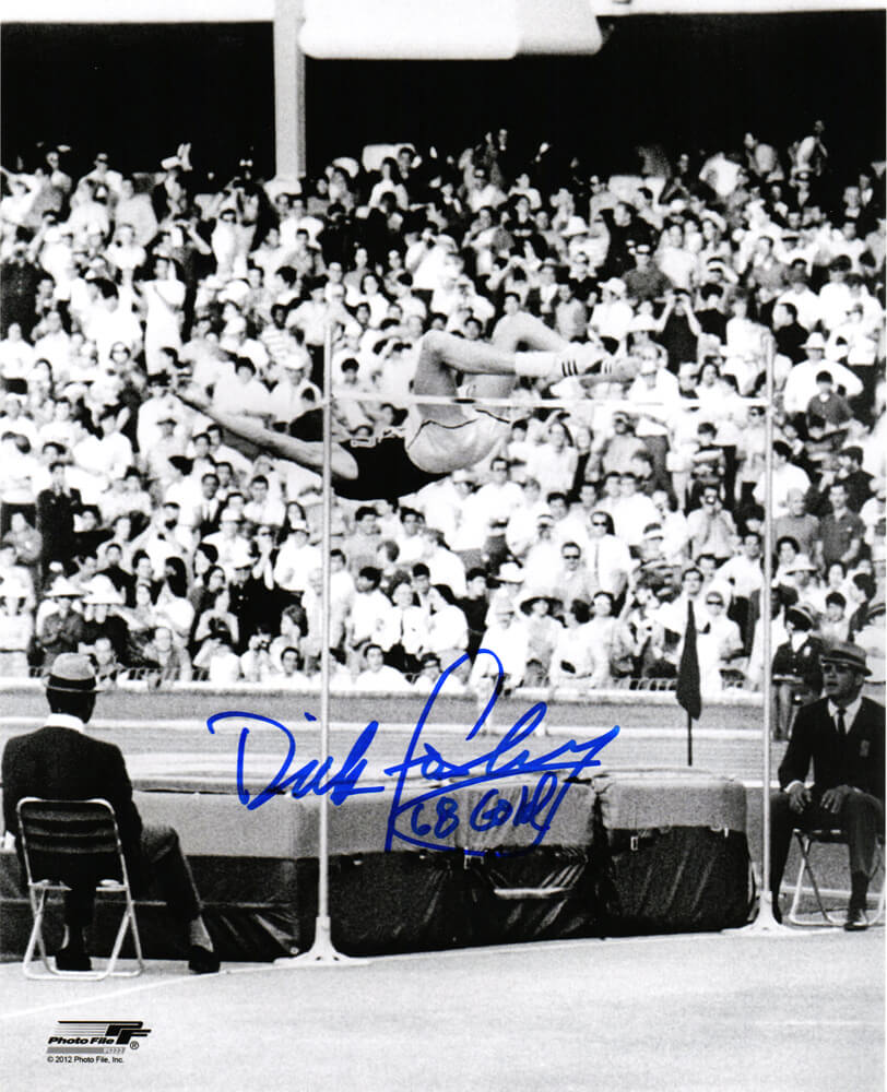 Dick Fosbury Signed 1968 Olympics High Jump B&W 8×10 Photo w/68 Gold
