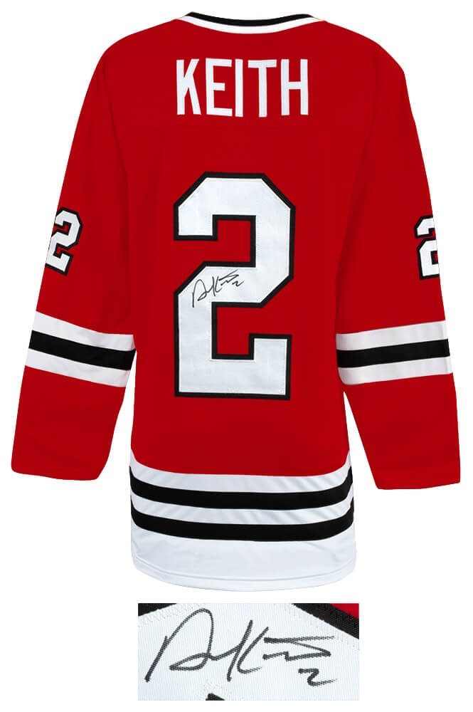 Duncan Keith signed red custom long sleeve hockey jersey. Item comes with a Schwartz Sports Memorabilia tamper-proof numbered hologram and Certificate of Authenticity which can be verified online.