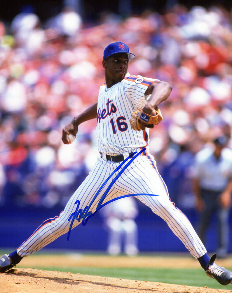 Dwight Gooden Signed NY Mets White Pinstripe Jersey Pitching Action 8×10 Photo