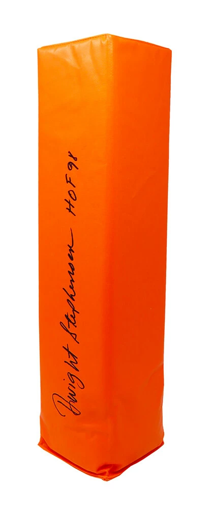 Dwight Stephenson signed orange endzone football pylon with ‘HOF 98’ inscription. Item comes with a Schwartz Sports Memorabilia tamper-proof numbered hologram and Certificate of Authenticity which can be verified online.