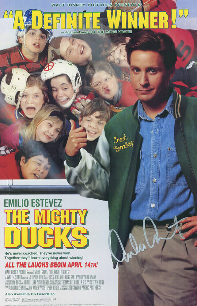 Emilio Estevez Signed The Mighty Ducks 11×17 Movie Poster (In Silver)
