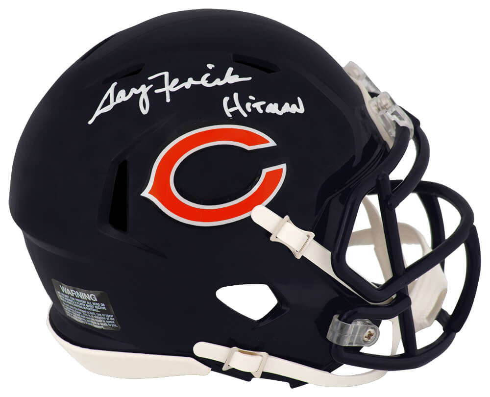 Gary Fencik signed Chicago Bears Riddell speed mini helmet with ‘Hitman’ inscription. Item comes with a Schwartz Sports Memorabilia tamper-proof numbered hologram and Certificate of Authenticity which can be verified online.
