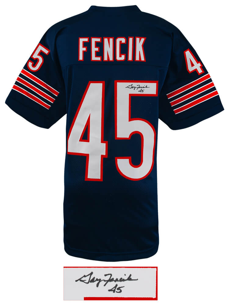 Gary Fencik signed navy custom football jersey. Item comes with a Schwartz Sports Memorabilia tamper-proof numbered hologram and Certificate of Authenticity which can be verified online.