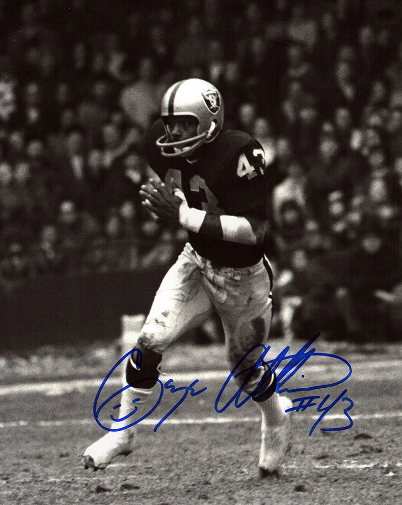 George Atkinson signed Raiders black and white action 8×10 photo. Item comes with a Schwartz Sports Memorabilia tamper-proof numbered hologram and Certificate of Authenticity which can be verified online.