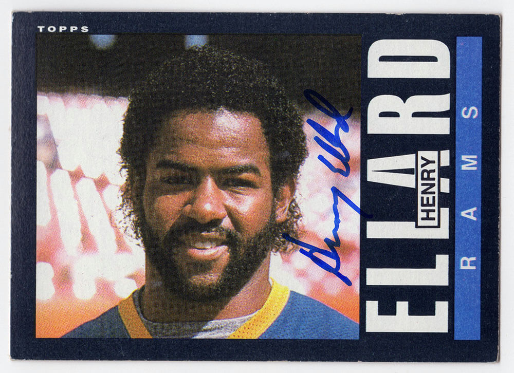 Henry Ellard signed Los Angeles Rams 1985 Topps rookie football trading card #80. Item comes with a Schwartz Sports Memorabilia tamper-proof numbered hologram (on back of physical card) and Certificate of Authenticity which can be verified online.