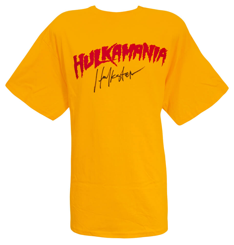 Hulk Hogan Signed Hulkamania Yellow Wrestling T-Shirt w/Hulkster Signature