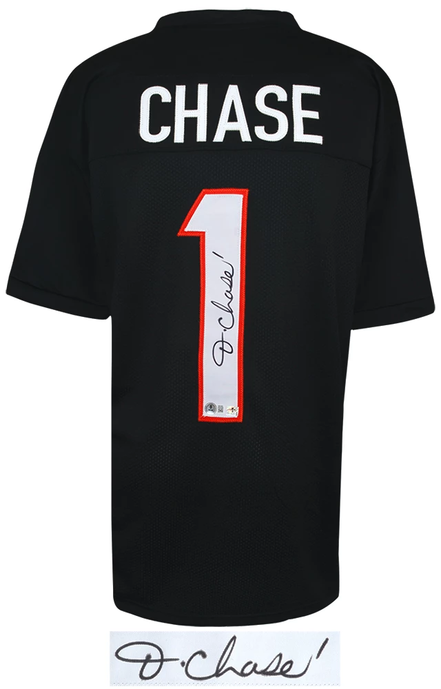 Ja’Marr Chase Signed Black Custom Football Jersey – (Beckett)