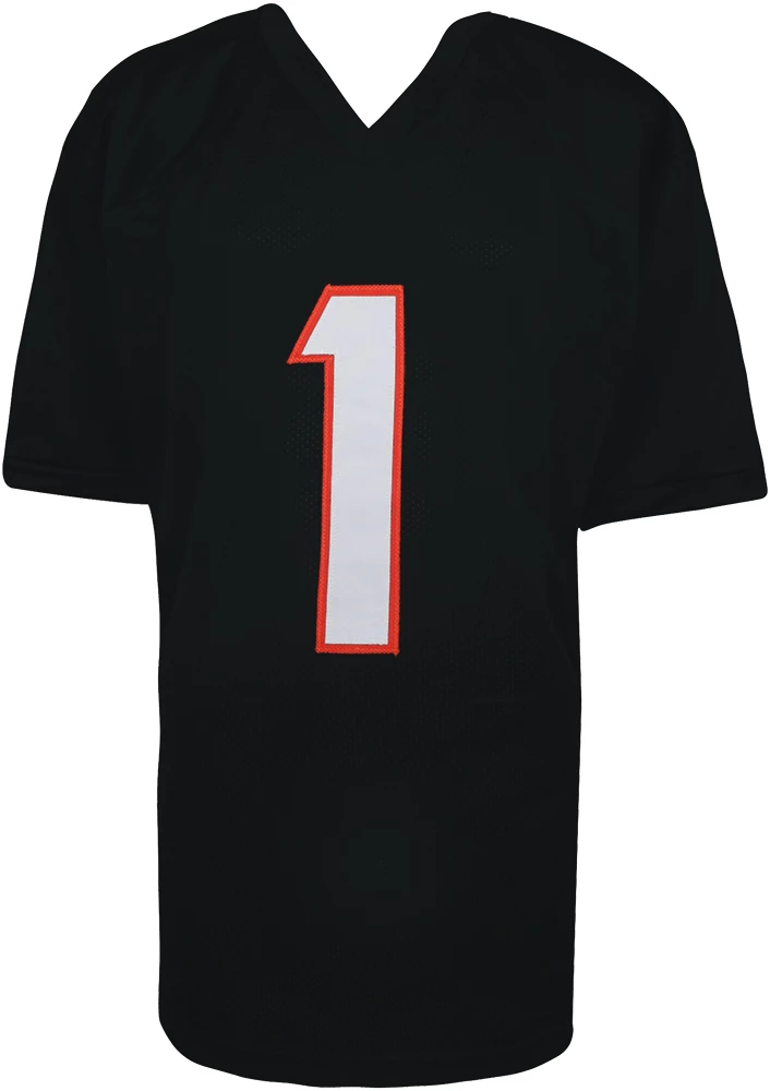 Ja’Marr Chase signed black custom football jersey. Item comes with a Beckett Authentication tamper evident numbered sticker and matching Certificate of Authenticity which can be verified online. Jersey is size XL.