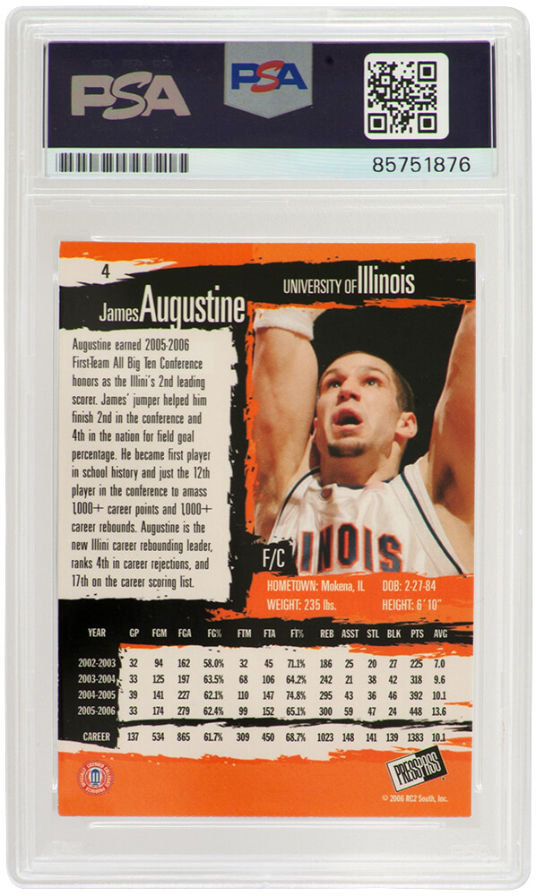 James Augustine Signed Illinois 2006 Press Pass Gold Rookie Basketball Trading Card #G4 – (PSA Encapsulated)