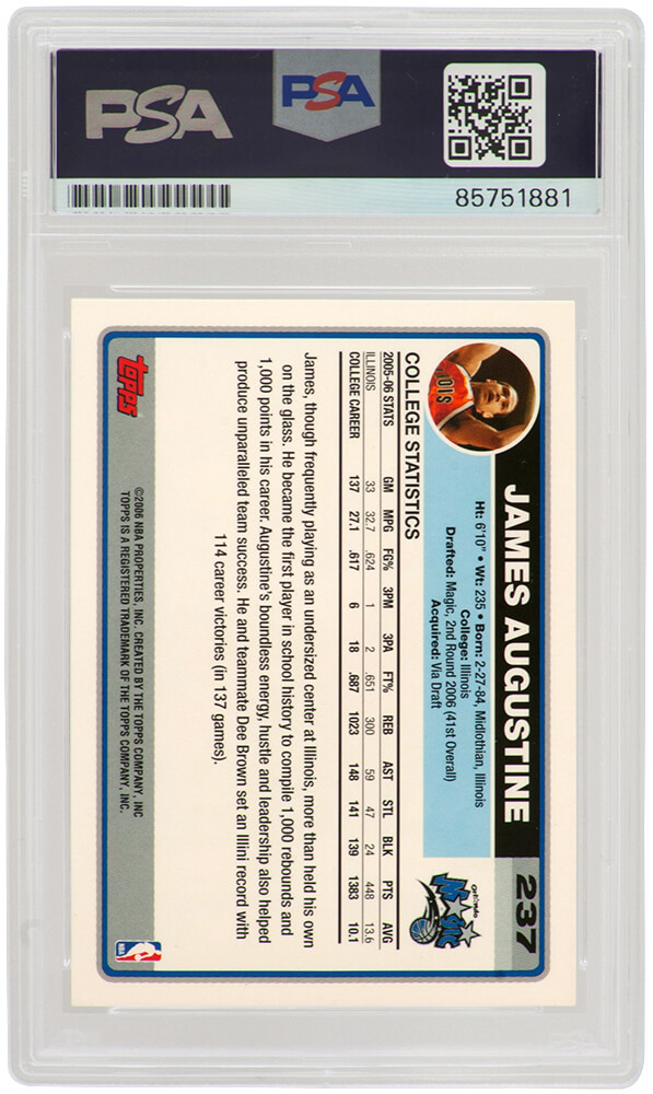 James Augustine Signed Orlando Magic 2006 Topps Rookie Basketball Card #237 – (PSA Encapsulated)