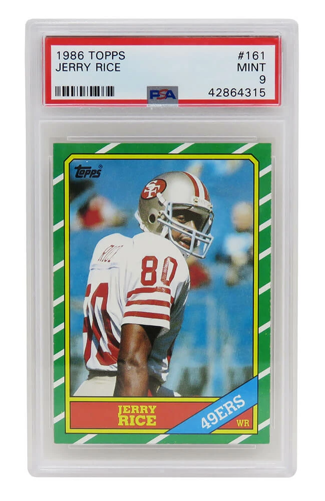 Jerry Rice (San Francisco 49ers) 1986 Topps Football #161 RC Rookie Card – PSA 9 MINT (B)