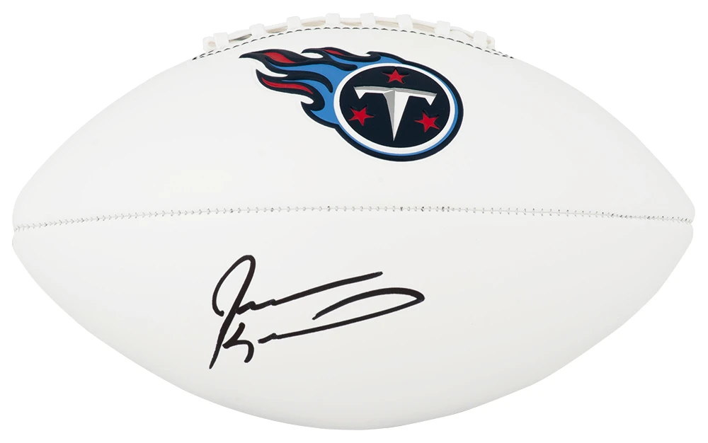 Jevon Kearse signed Tennessee Titans logo Franklin white football. Item comes with a Schwartz Sports Memorabilia tamper-proof numbered hologram and Certificate of Authenticity which can be verified online.
