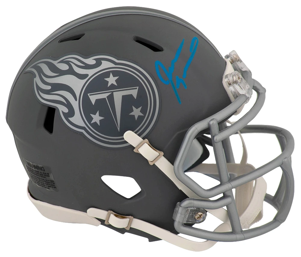 Jevon Kearse signed Tennessee Titans Slate Riddell speed mini helmet. Item comes with a Schwartz Sports Memorabilia tamper-proof numbered hologram and Certificate of Authenticity which can be verified online.