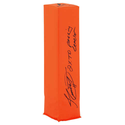Jim Everett signed BSN orange endzone football pylon with ‘2x TD Pass Leader’ inscription. Item comes with a Schwartz Sports Memorabilia tamper-proof numbered hologram and Certificate of Authenticity which can be verified online.