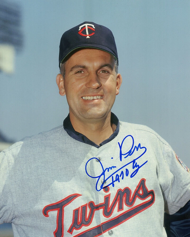 Jim Perry Signed Twins Close Up Pose 8×10 Photo w/1970 CY