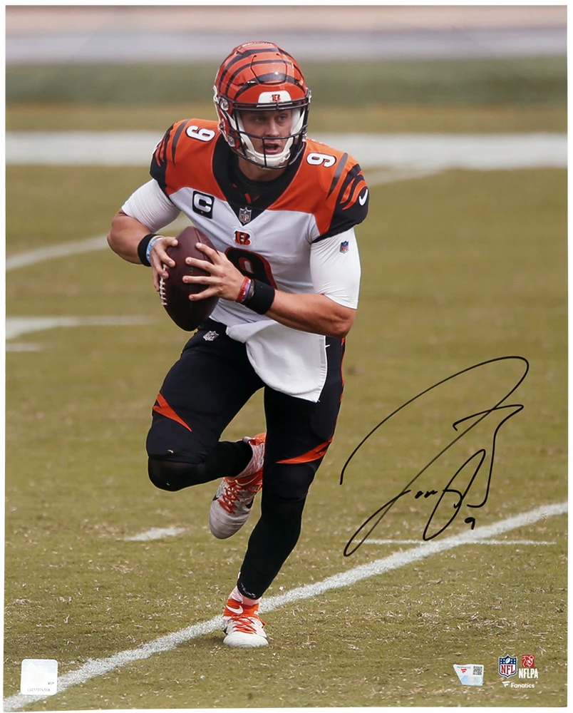 Joe Burrow Signed Cincinnati Bengals Rollout Action 16×20 Photo (Fanatics)