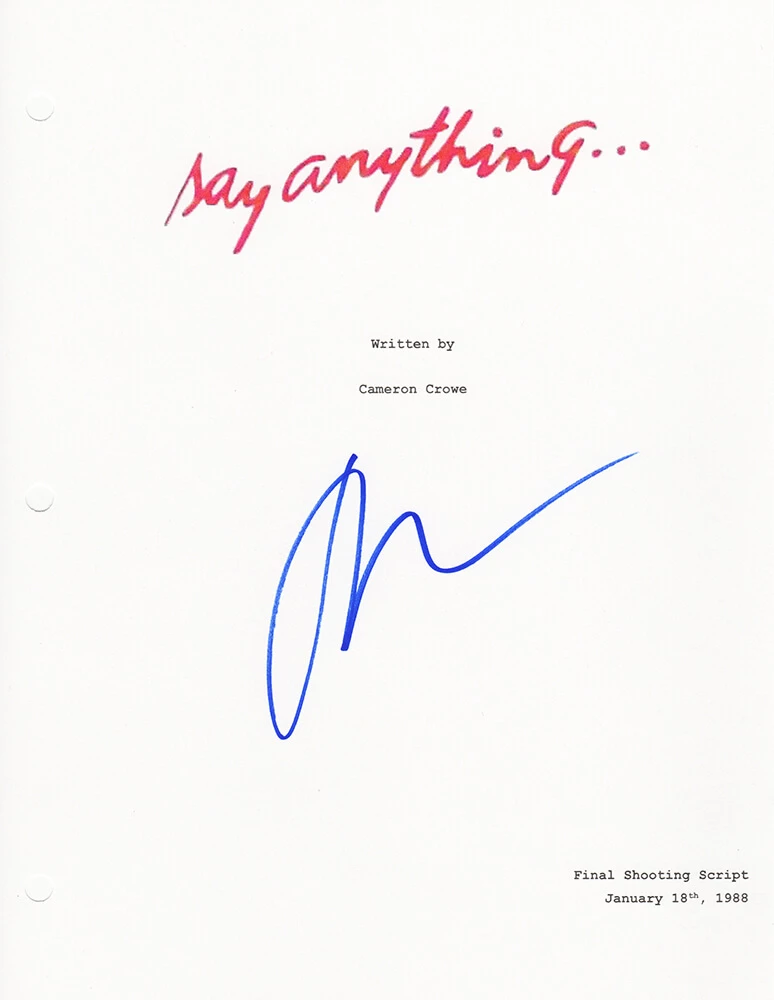 John Cusack Signed Say Anything Complete Movie Script Cover Sheet