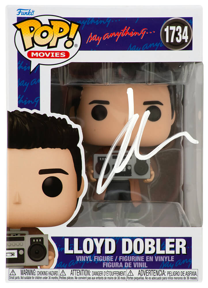 John Cusack signed Say Anything Lloyd Dobler holding boombox Funko Pop #1734. Item comes with a Schwartz Sports Memorabilia tamper-proof numbered hologram and Certificate of Authenticity which can be verified online.