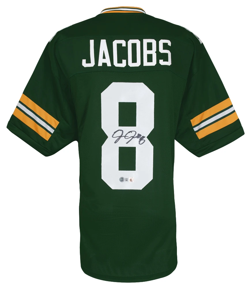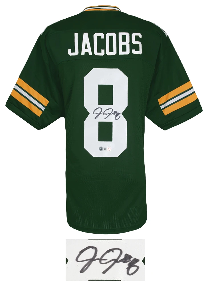 Josh Jacobs signed green custom football jersey. The jersey is size X-Large. Item comes with a Beckett Authentication tamper evident numbered sticker and matching Certificate of Authenticity which can be verified online.