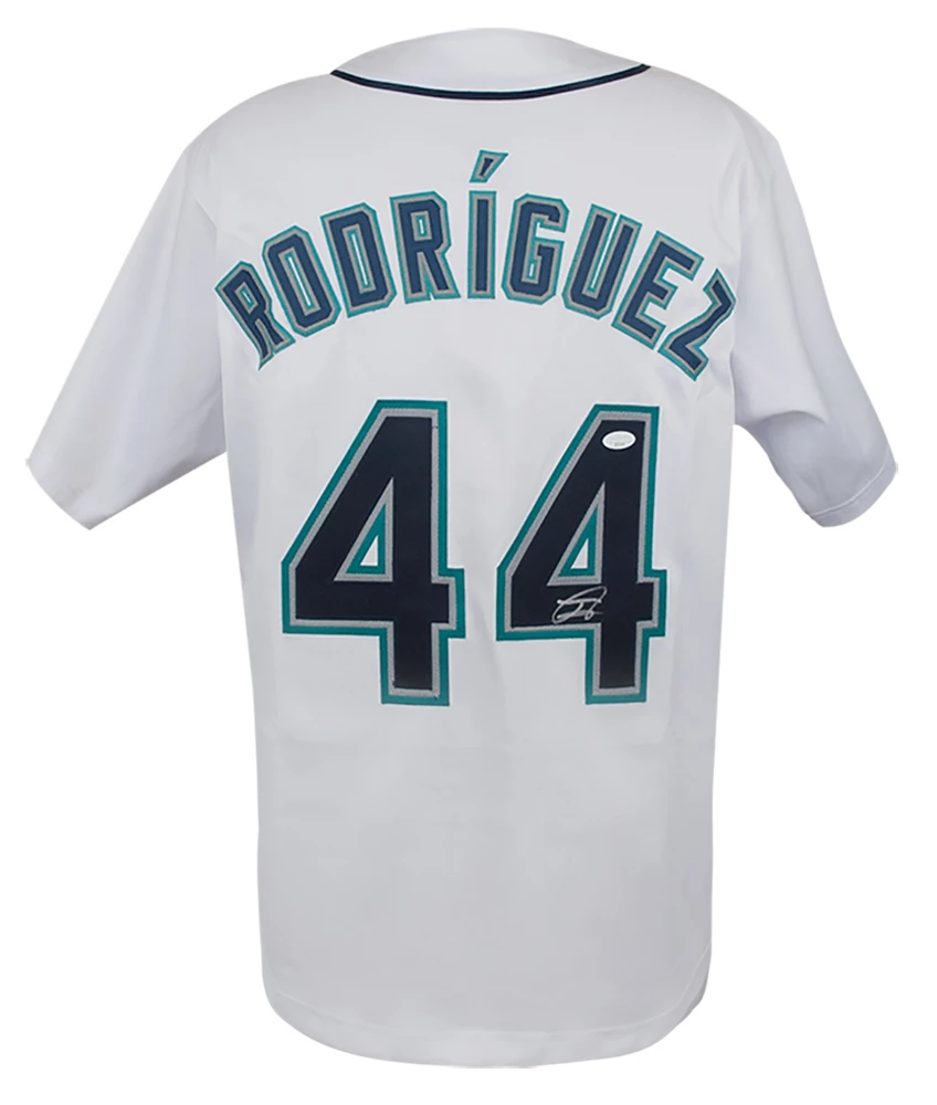 Julio Rodriguez signed white custom baseball jersey. Item comes with a JSA (James Spence Authentication) tamper evident numbered sticker and Certificate of Authenticity which can be verified online. Jersey is size XL.
