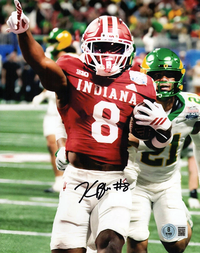 Kaelon Black signed Indiana Hoosiers championship game touchdown 8×10 photo. Item comes with a Beckett Authentication tamper evident numbered sticker and matching Certificate of Authenticity which can be verified online.