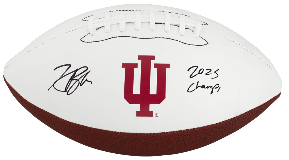 Kaelon Black signed Indiana Hoosiers Logo Brands white logo football with ‘2025 Champs’ inscription. Item comes with a Schwartz Sports Memorabilia tamper-proof numbered hologram and Certificate of Authenticity which can be verified online.