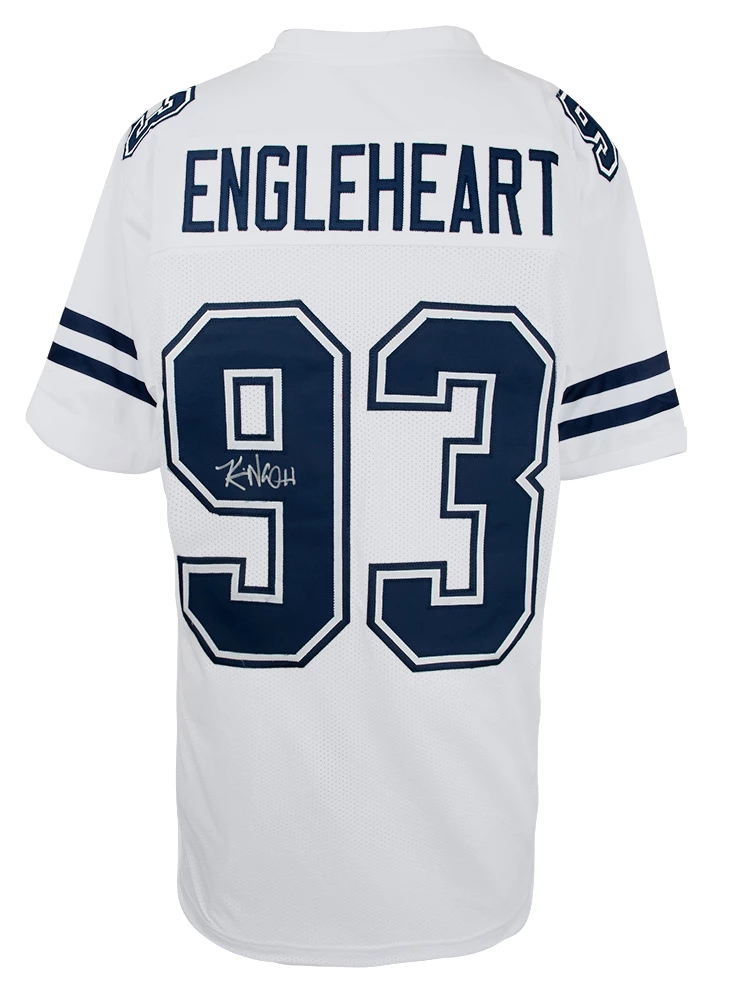 Kevin Nash signed The Longest Yard Engleheart #93 white custom football jersey. Item comes with a Schwartz Sports Memorabilia tamper-proof numbered hologram and Certificate of Authenticity which can be verified online.