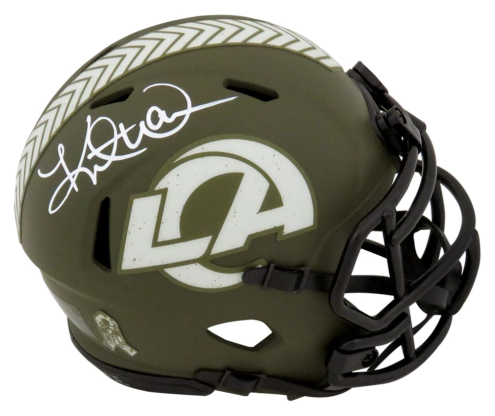 Kurt Warner Signed Rams Salute to Service Riddell Speed Mini Helmet