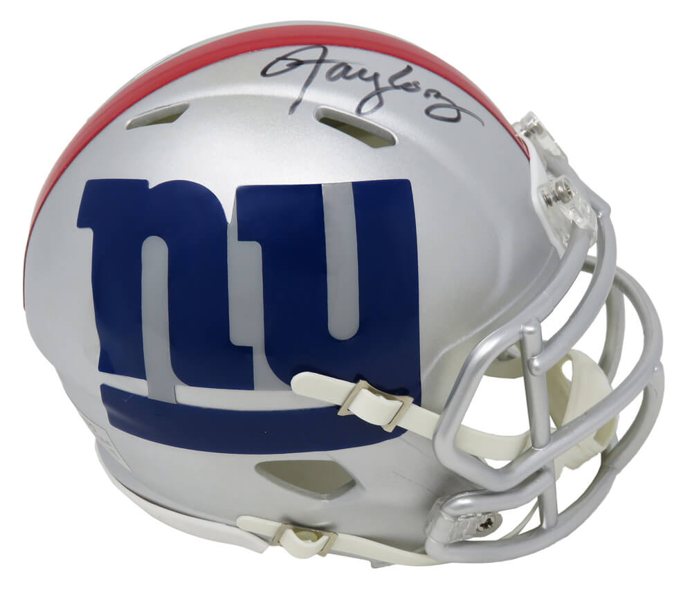 Lawrence Taylor signed New York Giants AMP Alternate Series Riddell speed mini helmet. Item comes with a Schwartz Sports Memorabilia tamper-proof numbered hologram which can be verified online.