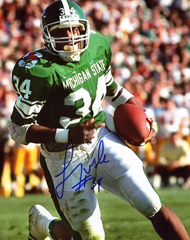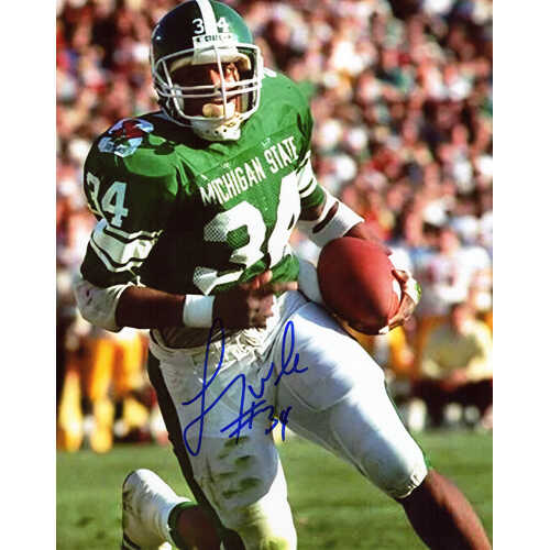 Lorenzo White Signed Michigan State Green Jersey Action 8×10 Photo